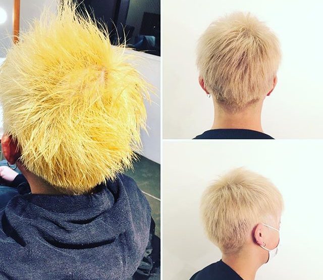 〔ホワイトブリーチ〕大学生なら1度はしてみたいブリーチ1度ではなかなかオレンジ色が抜けないので、日を分けて2回 ...