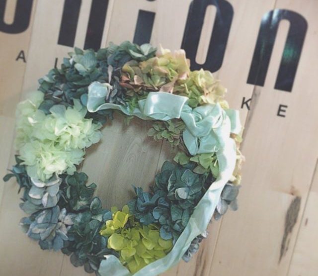 お店のイメージに合わせてお客様がリースを作ってくれました入り口の扉または雨の日などはお店に飾ってあります?とて ...